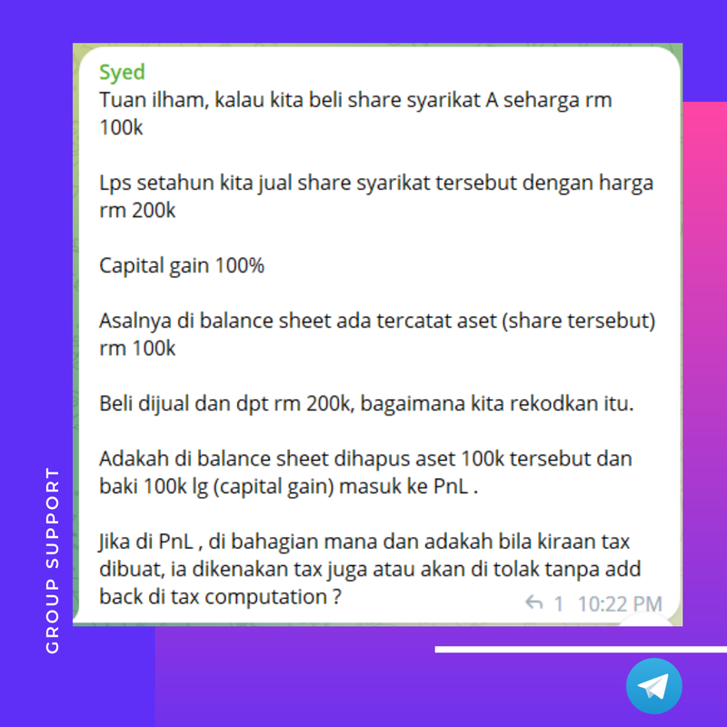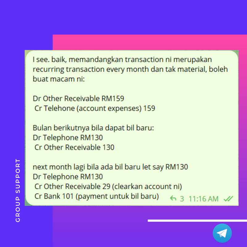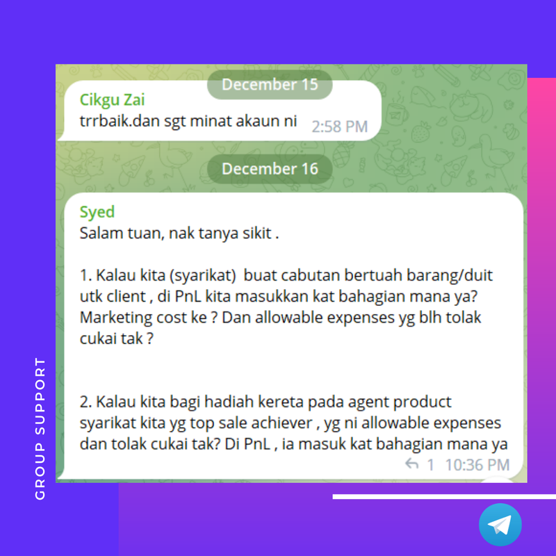 Anda juga boleh sertai group support telegram untuk bertanya apa-apa soalan berkaitan perakaunan dan kewangan.